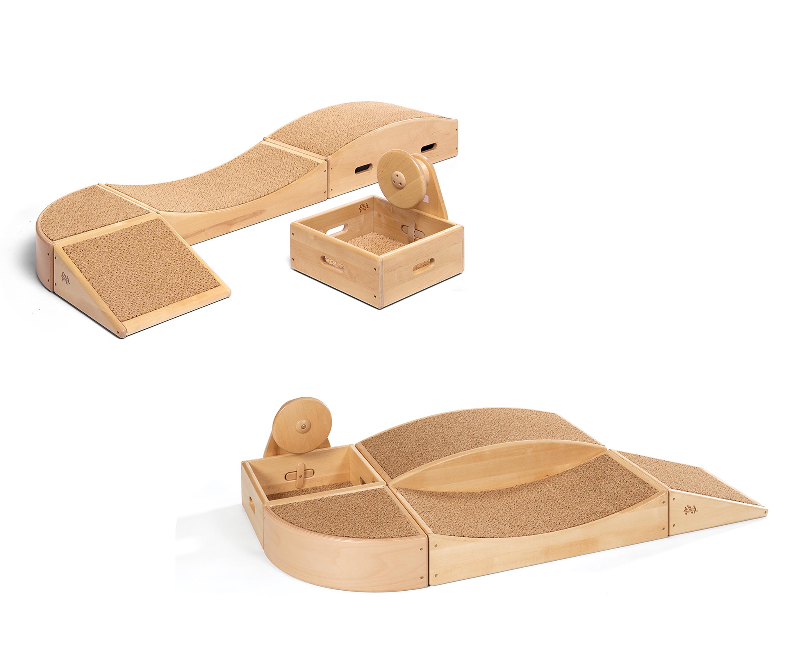 Create paths and steps with the carpet side up. Flip over, and it’s a climb-in bin. Units lock together with a unique connector and can be rearranged easily.